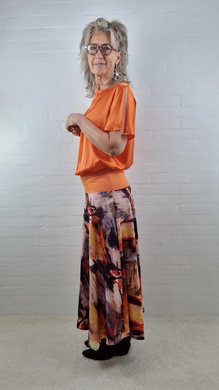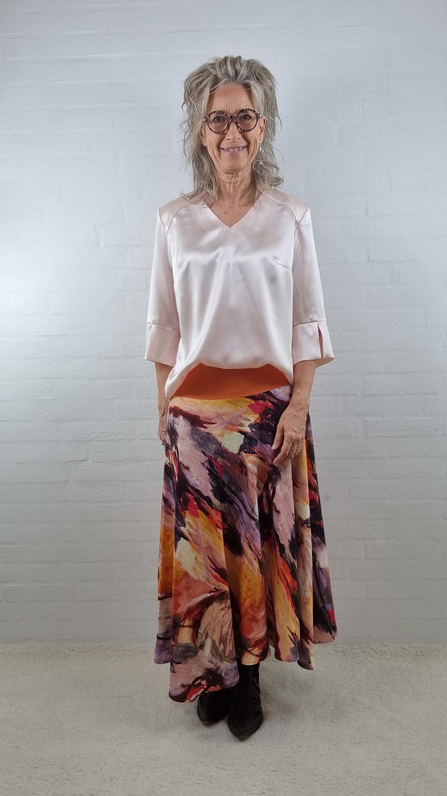 Farverig swing nederdel i viskose hør – levende bevægelse og malerisk udtryk
