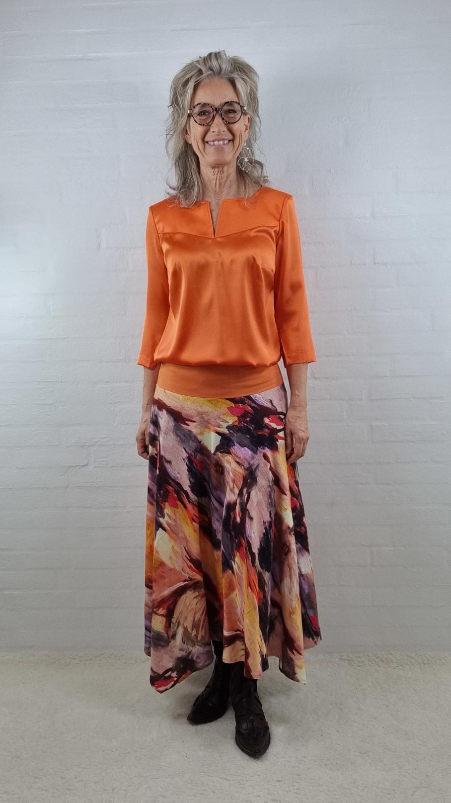 Nederdelen kan styles med en af mine smukke silkebluser.
